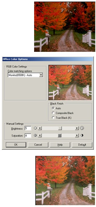 Printers are just like TV’s each manufacturer chooses how a default picture will be displayed ie contrast, brightness and depth of colour. The TV’s opposite are all Samsung TV’s and yet all the images are slightly different.
