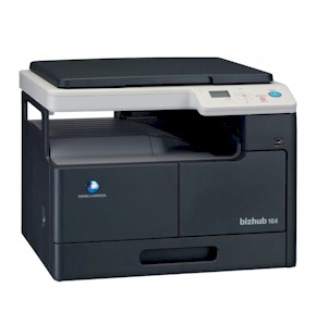 The bizhub 184 A3 mono printer with print, scan, fax and copy functions. Single-sided, manual double-sided, black-and-white prints are all produced at a rated output speed of 18 ppm. |