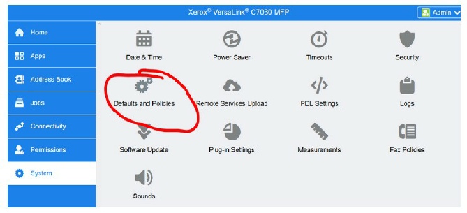 To display the screen below - click on System and then Defaults and Policies