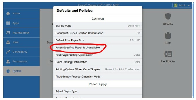 Now click on When Specified Paper is Unavailable