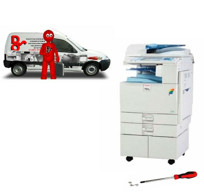 Ricoh MP C2500 maintenance required Our Ricoh trained mobile engineers can attend your site and carry out any preventative maintenance required by your Ricoh MP C2500. If your Ricoh MP C2500 is out of contract (original maintenance agreement expired) we will continue to maintain the equipment for you in West Sussex, East Sussex, Hampshire, Kent and Surrey on a time and materials basis. If your Ricoh MP C2500 is asking for any of the following to be replaced we can supply and fit as required:-