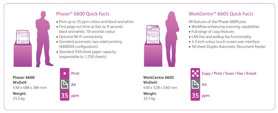 No matter what business you’re in, the Phaser 6600 and WorkCentre 6605 give your image an essential, colourful advantage.